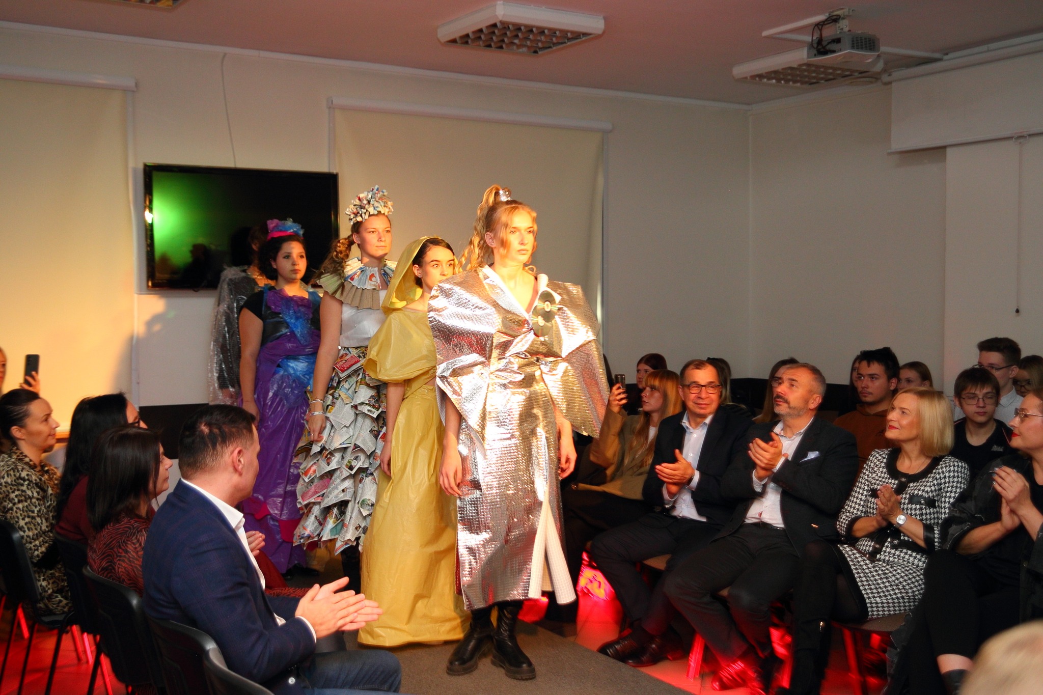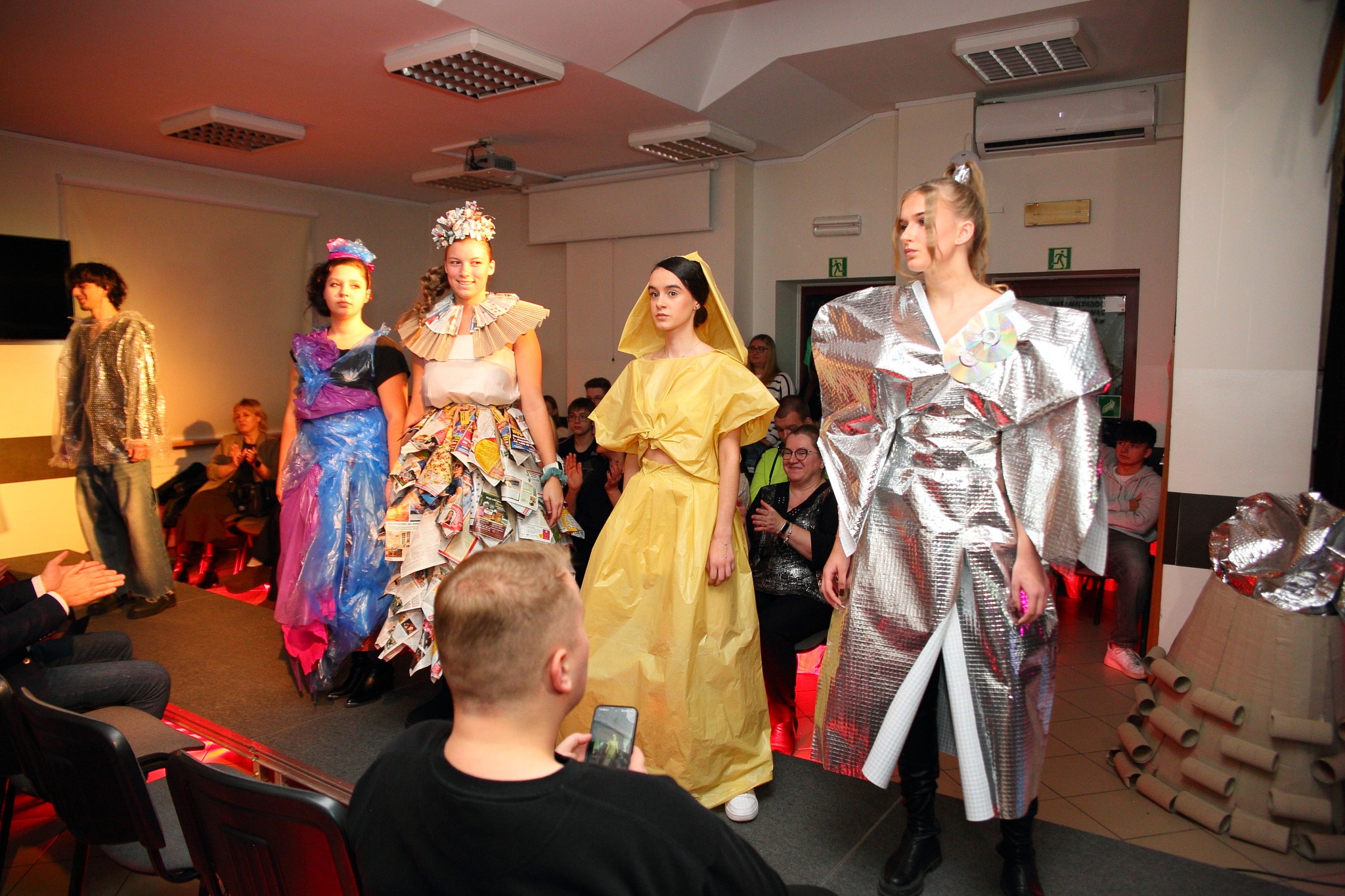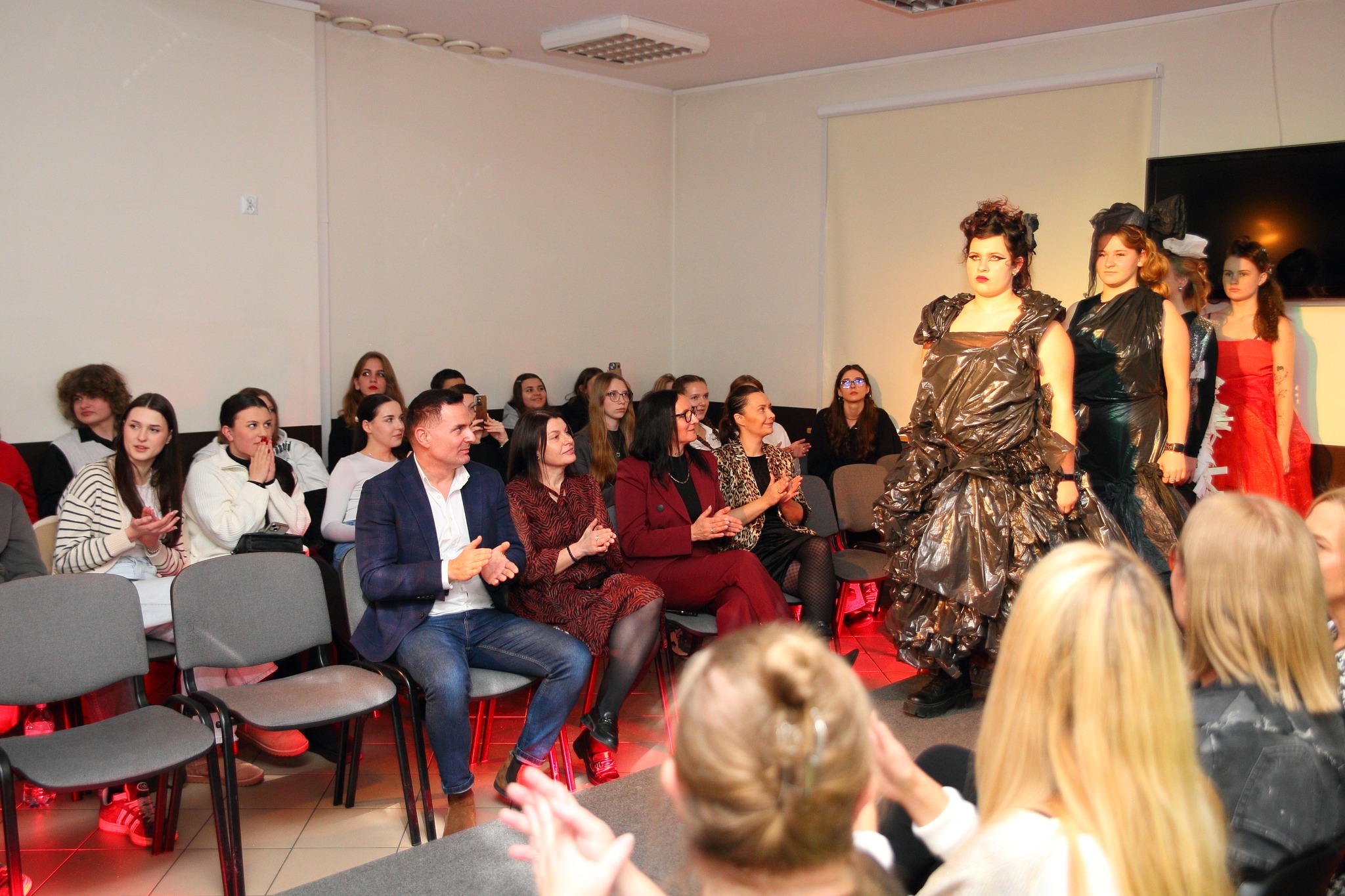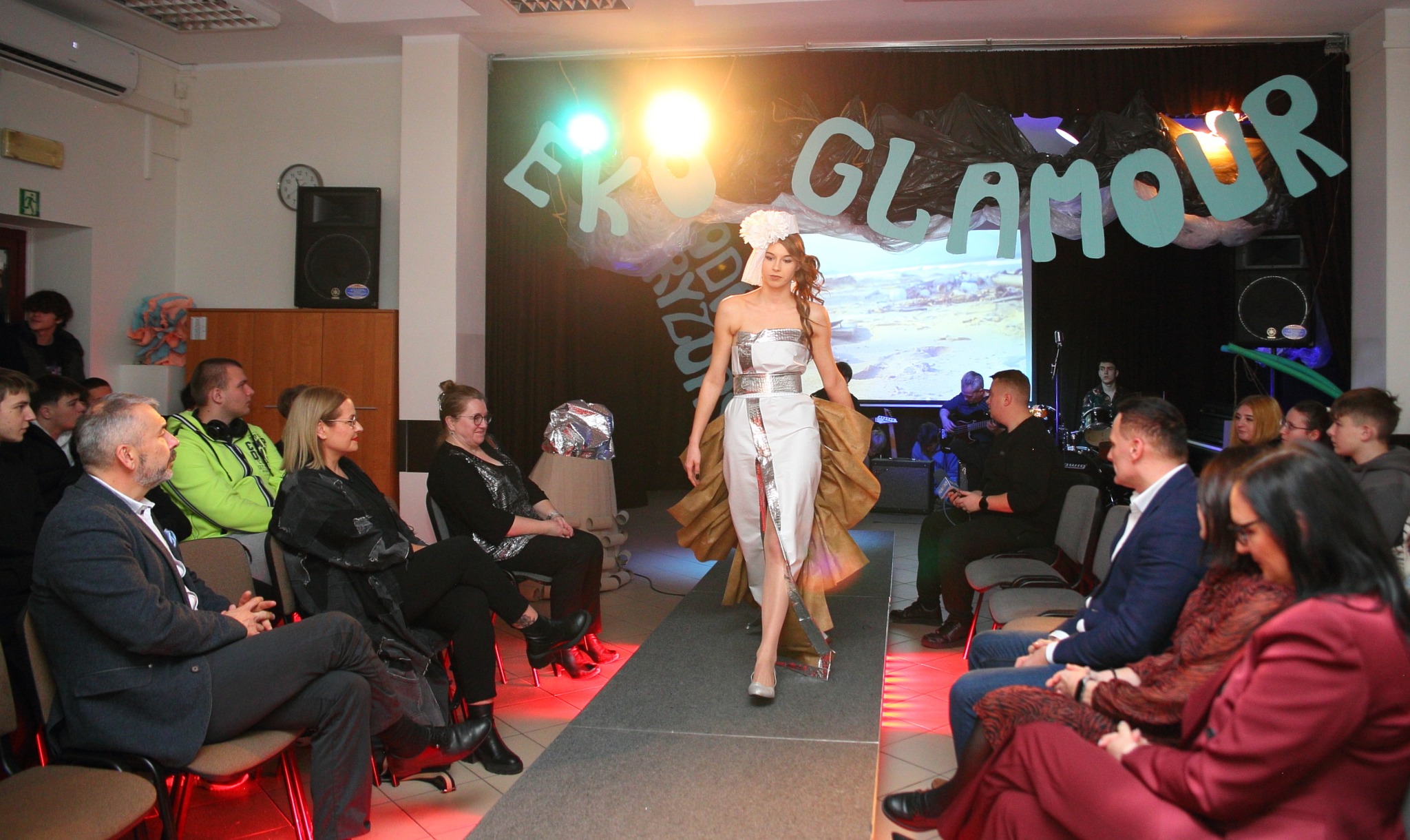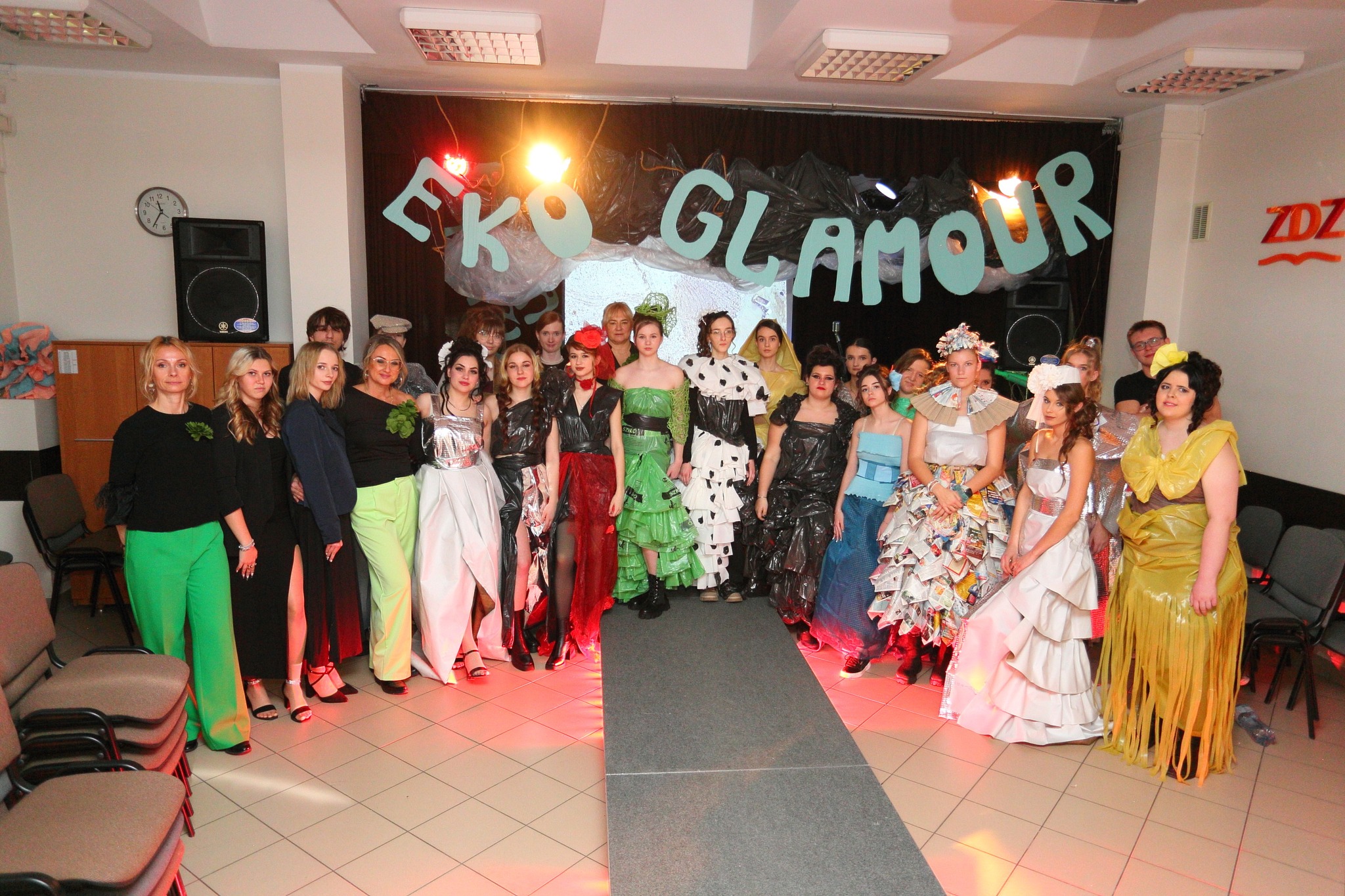Dnia 03.12.2024 r. w Zespole Szkół ZDZ w Kielcach odbył się wyjątkowy pokaz ECO GLAMOUR, jako efekt wspólnych działań nauczycieli fryzjerstwa oraz Szkolnego Koła Ekologicznego. Przygotowania trwały od wielu tygodni. W projekt zaangażowana była młodzież nie tylko klas fryzjerskich. Do stworzenia stylizacji zostały wykorzystane niekonwencjonalne materiały, głównie recyklingowe. Odpowiednio zestawione stworzyły zaskakujące i bardzo efektowne projekty. Młodzież mocno się zaangażowała, prześcigała w oryginalnych pomysłach i wykazała niezwykłą kreatywnością. Do tego odrobina zdolności manualnych i efekt okazał się fantastyczny. Piękne fryzury i makijaże dopełniły całość. Proponowane stroje z pewnością nie są na każdą okazję, bo przekraczają granice tradycyjnego projektowania odzieży, ale jeśli jest potrzeba stworzenia oryginalnego przebrania na imprezę tematyczną, to można się zainspirować. Należy podkreślić, że projekt był wyrazem troski o planetę, swoistym manifestem podkreślającym problem ekologii.